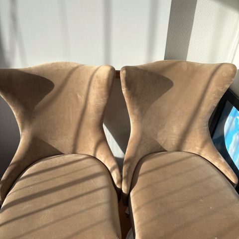 2 meget fine spisestuestole fra ca. 1950'erne. Stolene er istandsat med nyt betræk, malet med Vintage kalkmaling "Black Velvet" og efterbehandlet med mat voks. Stolesædet er ca 44 cm x 44 cm. Siddehøjde er ca 47 cm og højde på stolens ryg er ca 97 cm. Stolene sælges samlet for 200 kr.