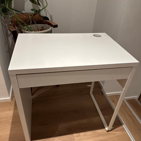 Ikea skrivebord med to skuffer og en aflang til opbevaring af ledninger