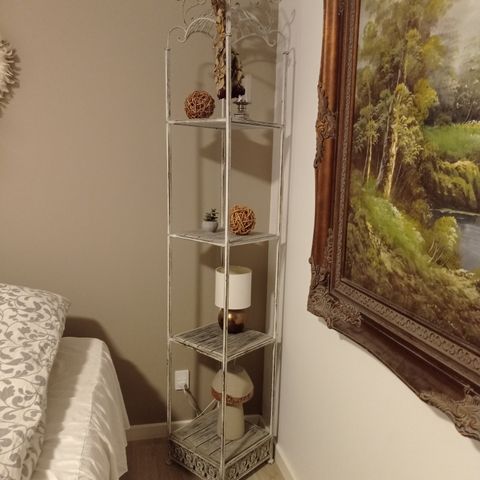 Fransk blomsterreol, Vintage metal reol med den helt rette patina.