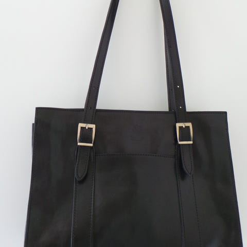 Skuldertaske, andet mærke, kalveskind, Super lækker sort shopper / skuldertaske i kraftigt men blødt kalveskind med flotte detaljer. Indvendig lynlåslomme og to små mobillommer. Aldrig brugt. Dustbag medfølger. Ny pris 2300 kr. Bredde 40 cm. Højde 36 cm. Dybde 14 cm. Ikke-ryger hjem. Sender gerne.