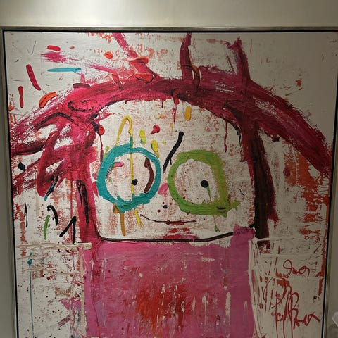 Dejlig og farverigt lærredstryk af Poul Pava - The word needs more flowers - i 70x100cm.