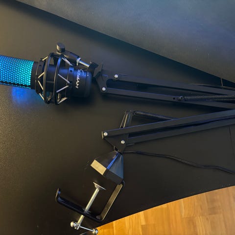 Jeg har haft brugt HyperX Quadcast S på den. Kig billeder, der er sat op hvilken størrelse skulle være brugbar kunne bruge.