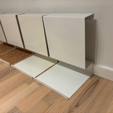 Hylde brugt i en kort periode, der er ingen brugsspor og der er sat filtdutter på bagsiden, så den ikke er blevet ridset af væggen.