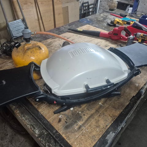 Fin gasgrill som mangler "indmad" i form af rist og brænder. Selve skallen er rigtig fin stand, og er børstet af for det værste skidt. Mener det er en Q200 men kan godt være lidt i tvivl..