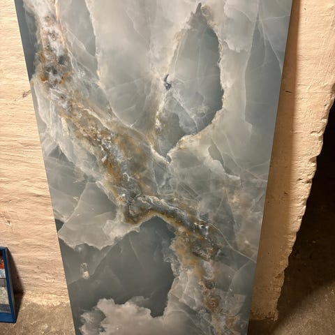 SMUK HVID MARMOR GLAS PLADE 40X120 CM 1 CM TYK