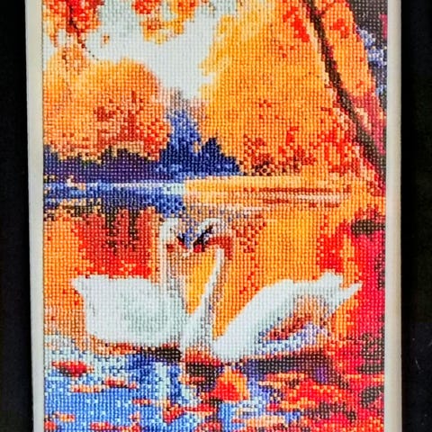 Diamantmalerier er håndlavede og lavet ved hjælp af 1 mm x 1 mm "diamanter", der er placeret på et specifikt design for at bringe det til live på lærred. Billederne er professionelt matteret af Aaron Brothers Custom Framing....... sæt af 3 plakater med ramme til 300dkk dimension 33x33