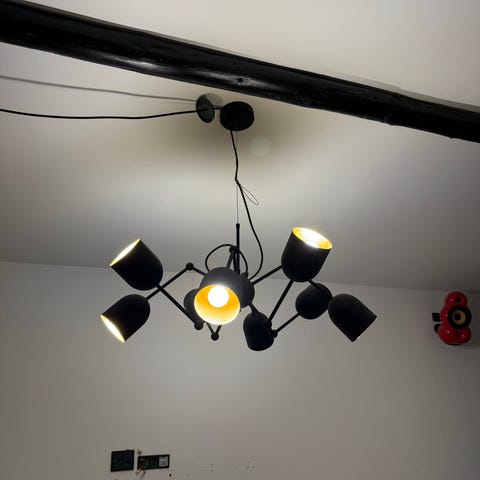 Giv et bud, skal væk pga. flytning Stor 7 armet lampe med glasbord