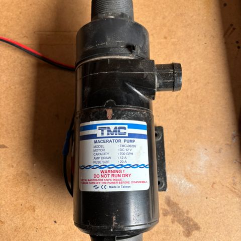 Macerato pumpe til holdingstank Den store måler 38 mm og det lille 27 mm. Pumpen er til 12 volt.