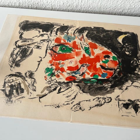 Tryk , Marc Chagall, b: 31 h: 41, To stk tryk af Marc Chagall med fine farver og fede motiver. Sælges samlet måler i højden 41 og 31 i bredden