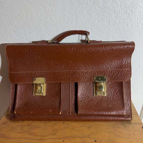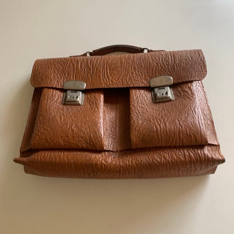 Flot vintage skoletaske i grøn kernelæder. Med den helt gamle lukning og til at bære i hånden
