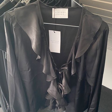 Flot og smart blondebluse fra Sisters Point. Aldrig brugt. Str. S. Sort. Kan afhentes i Viby J eller sendes på købers regning.