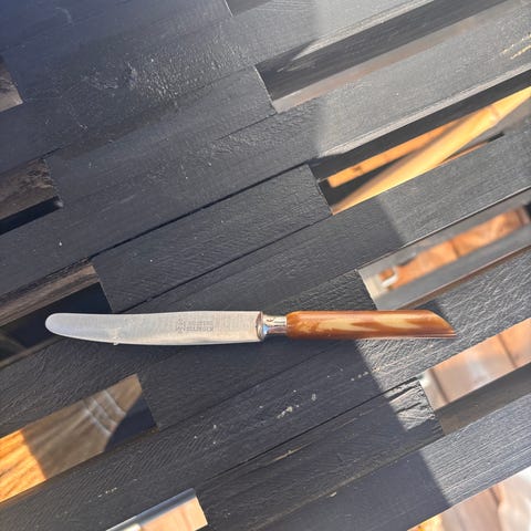 Brevkniv Dansk Karosseri Fabrik 12-14 Drejøgade telefon 7977 - længde 24 cm. Jeg ved ikke om det er sølv.
