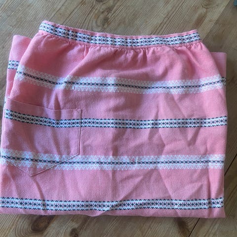 Længden er ca. 50 cm og det er malet/trykt blomster