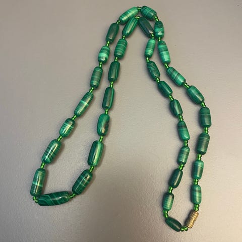 Halskæde, malakit / sølv