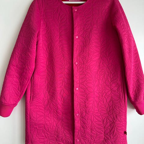 Rigtig frisk græsgrøn uldfrakke som vist er båret 2 gange. Jeg må erkende at den slet ikke kommer til sin ret, så det er bedst den får en ny ejer, som vil bære den oftere.