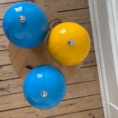 Lamperne er LED (6W) hvor du kan indstille farvetemperaturen mellem 3000K-6500K og kan dimmes. Lamperne har kun været brugt til kortere udstilling, så de står som nye, sælges dog som brugt.