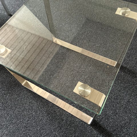 Brugt glasbord med forkrometstel.
