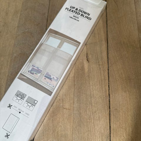 Helt nyt plisségardin up & down i hvid fra nyegardiner.dk. Sælges fordi bestilt i forkert størrelse.