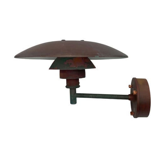 PH-kobberlampe med patina fra Louis Poulsen. Til ophæng på væg udendørs.