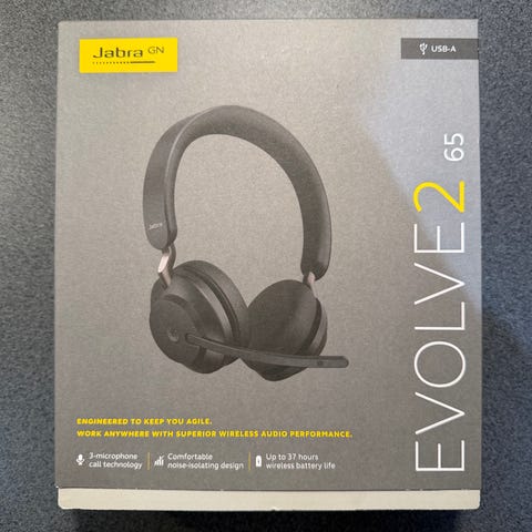 Sælger dette næsten ubrugte Jabra Evolve2 65 Flex – det mest bærbare professionelle headset i sin klasse med suveræn aktiv støjreduktion, ifølge producenten selv.