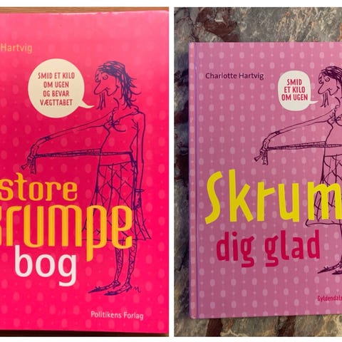 Skrump dig glad, Diætist Charlotte Hartvig, år 2007, 1. udgave, Bogen er på 145 sider og bl.a. fuld af lækre opskrifter.