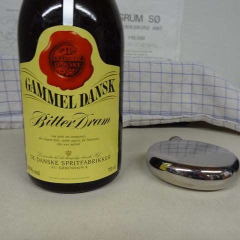 Delene er i god stand, dog har proppen på flasken nogle meget små buler.