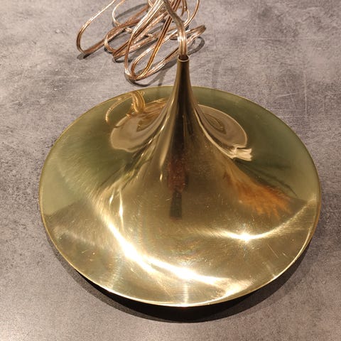Semi pendler fra danske GUBI. Mat hvid emaljerede metalskærme i pæn stand med få brugsspor. Den ene har en rids i toppen. Se foto. De er begge 38 cm i diameter.