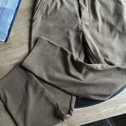 Pæne olivengrønne fløjlsbukser. Livvidde 88 cm. L 90 cm fra skridt til fod