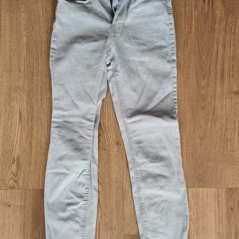 Mørkeblå jeans med en klassisk fem-lomme model. De har en smal pasform og en normal talje.