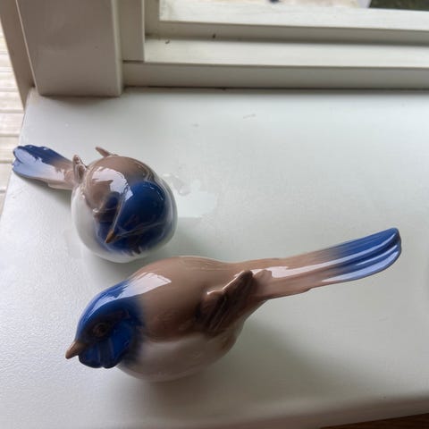 Den ene fugl har et lille anslag på halen - ellers er de begge i god stand.