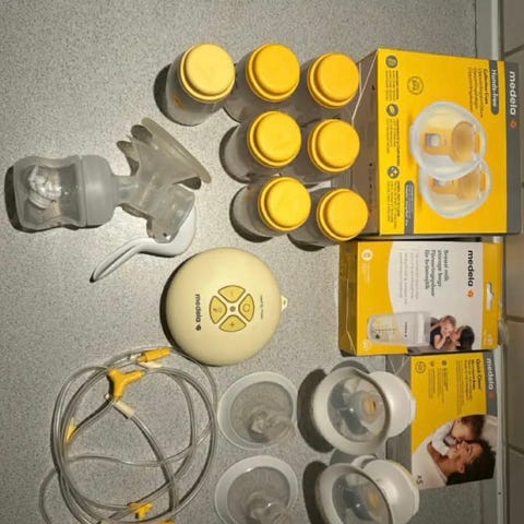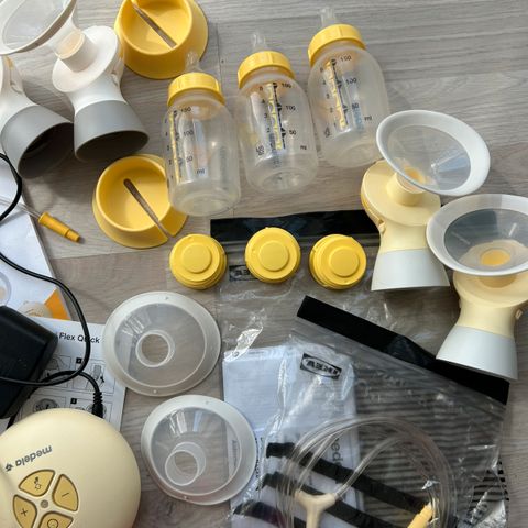- Elektrisk dobbelt brystpumpe fra Medela, hvor suget og rytmen kan justeres. Model “swing maxi”.