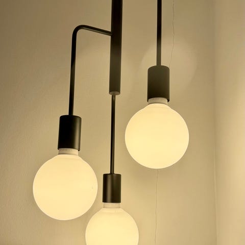 Loftlampe fra Frandsen Lighting, udformet i sortlakeret metal, sælges. Fremstår i perfekt stand og giver en hyggeligt belysning f.eks. i en læse-krog
