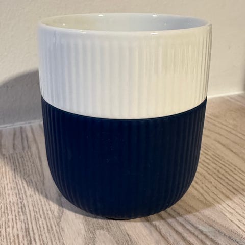 Porcelæn, Contrast krus , Royal Copenhagen, Riflet contrast krus i den UDGÅEDE farve Aquamarin fra 2007. 1. sortering uden brugsspor. Silikonen ALTID vasket op i hånden. Ikke-ryger hjem. Sender gerne.