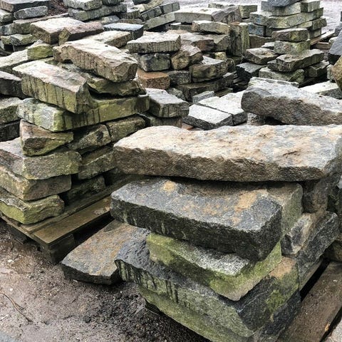 SÆLGES BILLIGT ! Flot ny natursten produceret og købt direkte på Bornholm. 20 cm bred. Nypris var 1000 kr./m2.