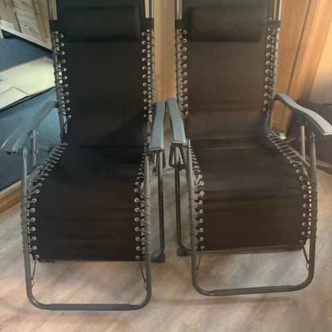 Havestole, /liggestole /strandstole. Der er en lille smule rust i den ene, ellers i pæn stand.