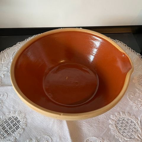 Stort Dejfad far Eslau , det måler 14 cm i højden , diam er 35 cm . Har lidt brugs spor i bunden .