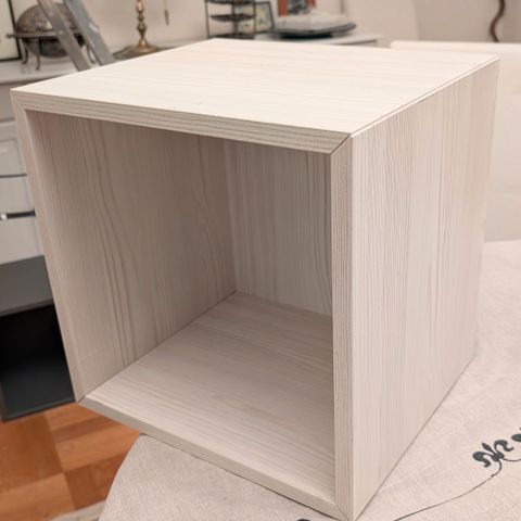 Kan sammensættes med flere kasser af samme mærke så det kommer til at udgøre en reol.