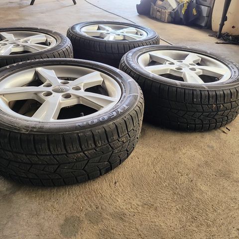 Brugt i 5 år, men dæk blev skiftet 2-3 år siden. Og ellers har de siddet i kælderen i 1 år.