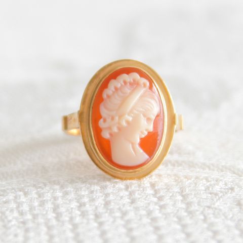 Flot 14 karat antik guldring med fint udskåret camé med kvindehoved, fremstillet af guldsmed Hugo Grün, ringstørrelse 53, stemplet 585 og H.Gr. I god stand. Prisen er FAST.