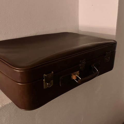 Vintagekuffert som har set bedre dage og som måske bedst egner sig som et udstillingsobjekt.