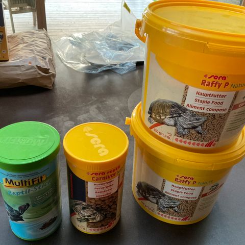 3 poser med 150 gram i hver. Købt på dyremesse i 24' men har ikke skildpadde mere.