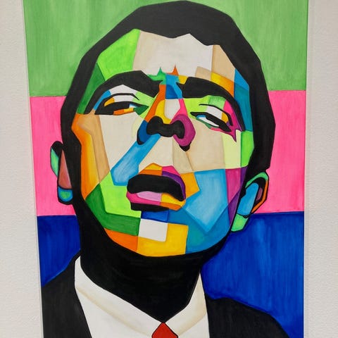 Blandede medier (olie og akryl på lærred) af Jon Rasmussen.