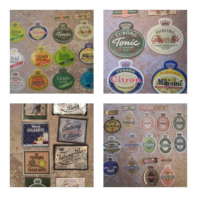Øl, 27 Grøn Tuborg etiketter,puslespil, 27 puslespil etiketter fra Grøn Tuborg.