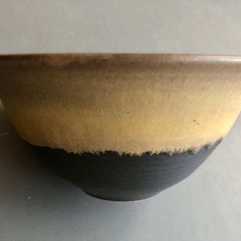 Stentøj, Skål, Skål / fad lavet af Ulrik Lundbergh i Ebeltoft med løbeglasur i brun, creme og sort glasur. Skålen fremstår meget flot og intakt. Den måler 22,5 cm Ø og vejer 950 gram.