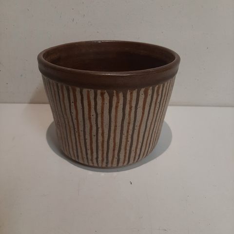 Stentøj, Potteskjuler, Signeret "Trine", men jeg har kunne identificerer hvem trine. Skjuleren Måler 8,2 cm høj og 12,8 cm Ø. Den vejer 450 gram. Fremstår flot og intakt.