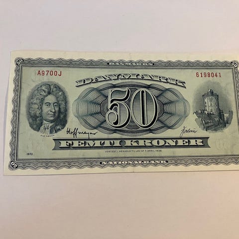 50 kr seddel Danmark A8 1970 Sunesen erstatningsseddel
