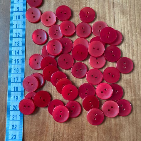 6 billeder med plastikknapper i røde bordeaux og pink farver