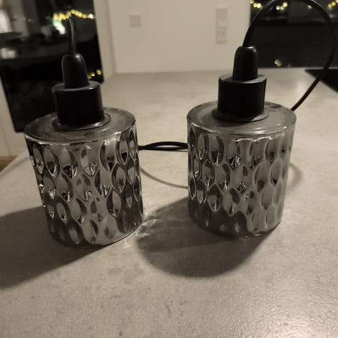 Sælger disse 2 pendler for samlet pris 100kr. Pærer medfølger ikke.