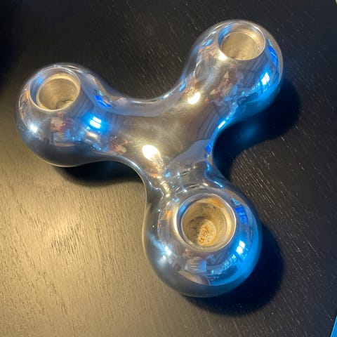 Arne Jacobsens ikoniske kuglelysestage i poleret alu.