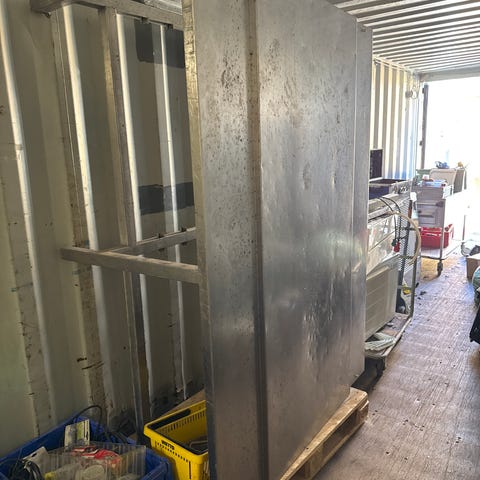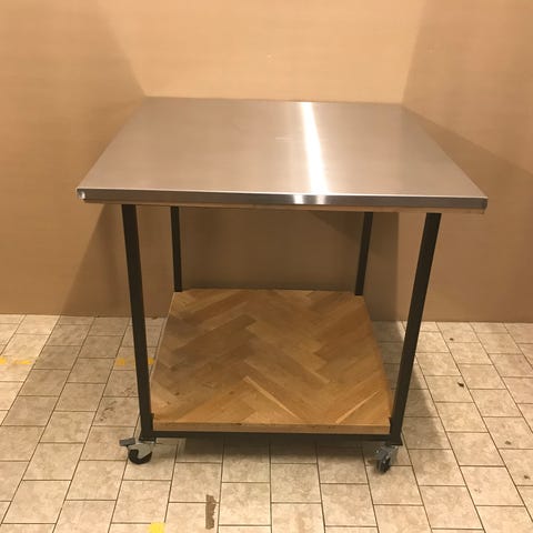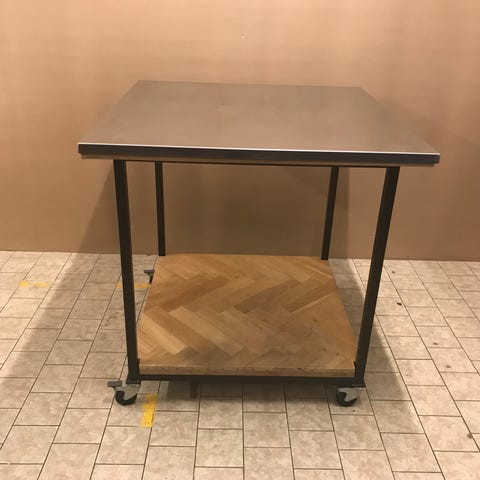 Rustfrit stål på hjul. 112 h x 50 b x 70 l.